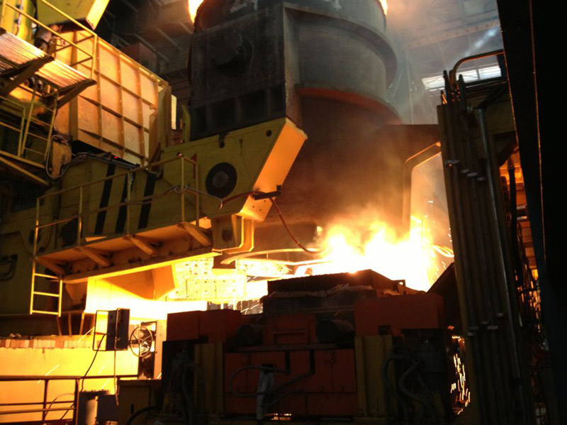 公司為用戶安裝的鋼包正在澆注